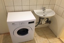 Waschmaschine und Trockner sind vorhanden.