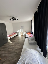 Das 1.OG unserer Pension besteht aus 5 x Doppelzimmern, 1 x Dreibettzimmer und einer Gemeinschaftsküche.